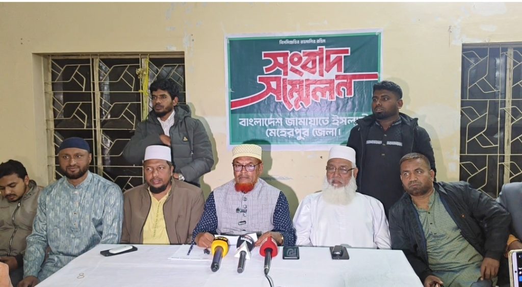 জামায়াতের জনসভায় যাওয়ার পথে উদ্ধারকৃত মালামাল অস্ত্র না হওয়ায় আটক তিনজনকে ছেড়ে দিল পুলিশ ঘটনার প্রতিবাদে মেহেরপুর জেলা জামায়াতের সংবাদ সম্মেলন