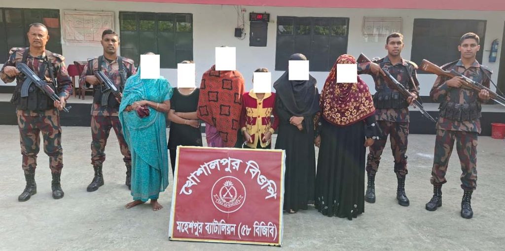 অপরদিকে গতকাল রবিবার খোসালপুর বিওপি’র সীমান্ত পিলার-৬০/৭৪-আর এর নিকটে খোশালপুর গ্রামে নায়েব সুবেদার তাপস সরকার এর নেতৃত্বে নিয়মিত টহল পরিচালনা করে। এ সময় অবৈধভাবে বাংলাদেশ হতে ভারতে যাওয়ার চেষ্টকালে ৬ জনকে আটক করা হয়। এর মধ্যে ৪ জন নারী ও ২ জন শিশু। আটককৃত ধুরকে মহেশপুর থানায় হস্তান্তর করা হয়েছে।