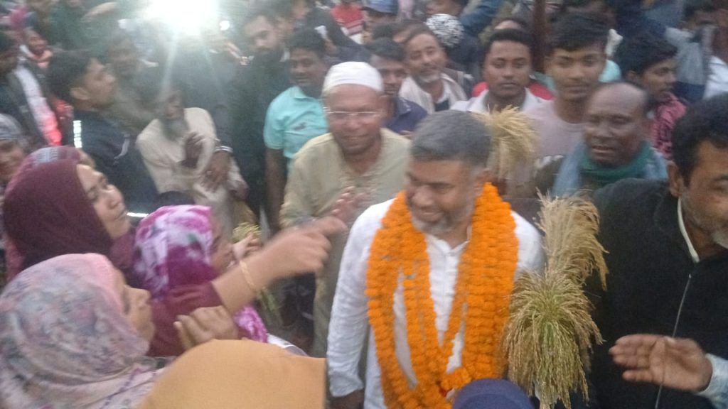 আলমডাঙ্গার ভাংবাড়িয়ায় ধানের শীষের পক্ষে ভোটারদের ফুলেল শুভেচ্ছায় সিক্ত হলেন চুয়াডাঙ্গা-১ আসনের বিএনপির মনোনীত প্রার্থী মোঃ শরীফুজ্জামান শরীফ। রবিবার বিকাল সাড়ে ৪ টার দিকে আলমডাঙ্গা উপজেলার ভাংবাড়িয়া ইউনিয়নে ভাংবাড়িয়া সরকারি প্রাথমিক বিদ্যালয়ের মাঠে ধানের শীষের পক্ষে পথসভায় মাধ্যমে প্রচরণা শুরু করা হয়। এরপর ভাংবাড়িয়া বাজার, নগরবোয়ালিয়া, হাঁটুভাঙা, মোড় ভাঙ্গা গ্রামের নারী পুরুষ সাধারণ মানুষ রাস্তার দুইধারে ধানের শীষ হাতে ফুলের মালা দিয়ে বরণ করে নেন জেলা বিএনপির সাধারণ সম্পাদক মো: শরীফুজ্জামান শরীফকে।