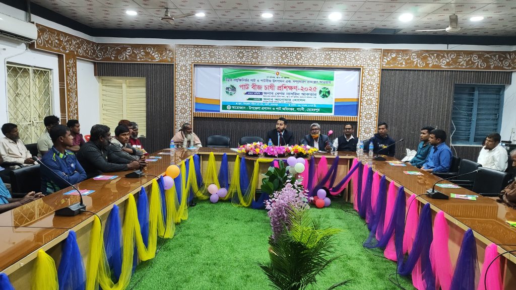মেহেরপুরের গাংনীতে উন্নত প্রযুক্তিনির্ভর পাট ও পাটবীজ উৎপাদন এবং সম্প্রসারণ কার্যক্রমের আওতায় চাষীদের প্রশিক্ষণ অনুষ্ঠিত হয়েছে। বুধবার উপজেলা পরিষদ সভা কক্ষে পাট বীজ চাষীদের এ প্রশিক্ষনের আয়োজন করে পাট অধিদপ্তর।