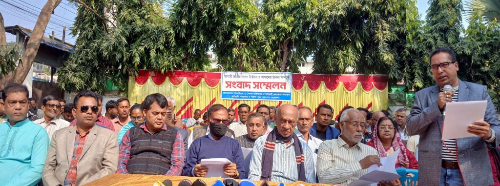 সংবাদ সম্মেলনে লিখিত বক্তব্য পাঠ করেন, বাংলাদেশ হিন্দু বৈদ্ধ খ্রীষ্টান ঐক্য পরিষদের জেলা আহবায়ক চন্দন বসু মুক্ত। এ সময় উপস্থিত ছিলেন, বাংলাদেশ হিন্দু বৈদ্ধ খ্রীষ্টান কল্যান ফ্রন্টের সদস্য সচিব প্রহল্লাদ সরকার, পূজা উদযাপন ফ্রন্টের আহবায়ক মলিন কুমার ঘোষ, সদস্য সচিব সমীর কুমার হালদার, দিপংকর ঘোষ, বাংলাদেশ হিন্দু বৈদ্ধ খ্রীষ্টান পরিষদের অরুণ কুমার ঘোষ, গণেষ চন্দ্র বিশ্বাস, সুমন বিশ্বাস, প্রবীন সনাতনী ব্যক্তিত্ব অবসর প্রাপ্ত শিক্ষক অধ্যক্ষ শুষেন কুমার ভৌমিক, বিমল কুমার ঘোষাল ও সাধান কুমার ঘোষ।