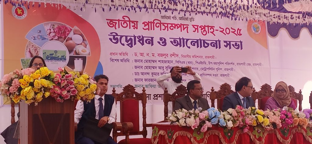 রাজশাহী শহরের চিড়িয়াখানার মোড়ে শুরু হয়েছে, সপ্তাহ ব্যপী প্রাণিসম্পদ মেলা । আজ ২৬/১১/২৫ ইং তারিখ সকাল ১০ টার সময় এই মেলার উদ্বোধন করেন, মাননীয় প্রধান অতিথি, জনাব ড. বজলুর রশীদ ( রাজশাহী বিভাগীয় কমিশনার) । ব্যপক উৎসাহ, উদ্দীপনার মধ্যে দিয়ে এই মেলার উদ্বোধন করা হয় ।বিশেষ অতিথি হিসেবে উপস্থিত ছিলেন, মাননীয় জেলা প্রশাসক , আফিয়া ইসলাম। জনাব, আবু সুফিয়ান, পুলিশ কমিশনার, রাজশাহী । ফারজানা ইসলাম পুলিশ সুপার, রাজশাহী ।