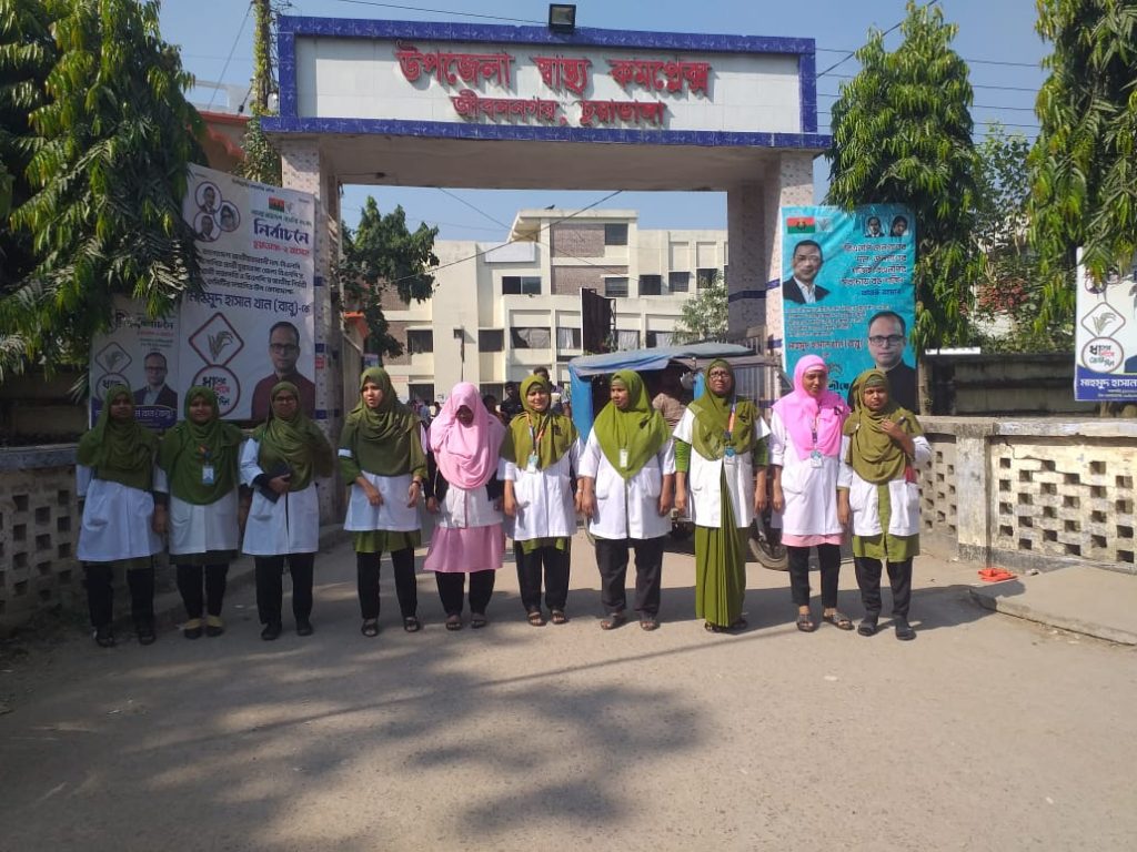 এ সময় উপস্থিত ছিলেন জীবননগর উপজেলা স্বাস্থ্য কমপ্লেক্স এর সুপার ভাইজার সিনিয়র স্টাফ নার্স রানু খাতুন, সেলিনা খাতুন, রুপালি খাতুন, মিডওয়াইফ ববিতা খাতুন, মিডওয়াইফ শান্তনি খাতুন, সিনিয়র স্টাফ নার্স সেলিনা খাতুন, মোছাঃ সেলিনা খাতুন (২) সুরাইয়া খাতুন, মোছা: নাসরিন আখতারী, নাসিমা খাতুন, রেক্সেনা খাতুন প্রমুখ। নার্সরা বলেন, তাদের দাবি পূরণ না হলে ধারাবাহিক কর্মসূচি পালন করা হবে। ৩০ নভেম্বর কালো ব্যাজ ধারণ করে দুই ঘন্টাব্যাপি প্রতীকী শাট-ডাউন এবং ২ ডিসেম্বর থেকে দাবী বাস্তবায়ন না হওয়া পর্যন্ত দেশের সকল স্বাস্থ্যসেবা এবং নার্সিং ও মিডওয়াইফারি শিক্ষা প্রতিষ্ঠানে কমপ্লিট শাট ডাউন পালন করা হবে।