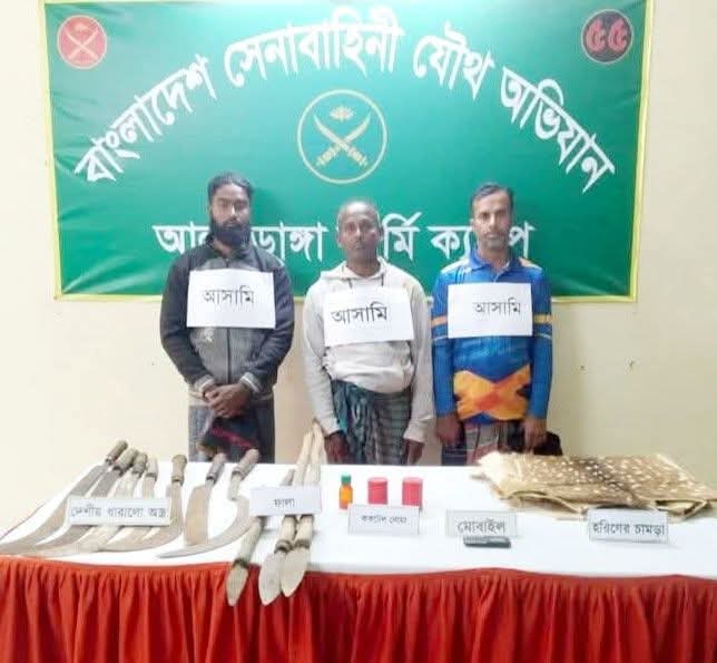 আলমডাঙ্গায় দেশীয় অস্ত্রসহ বিএনপি নেতা হান্নানসহ ৩জন গ্রেফতার