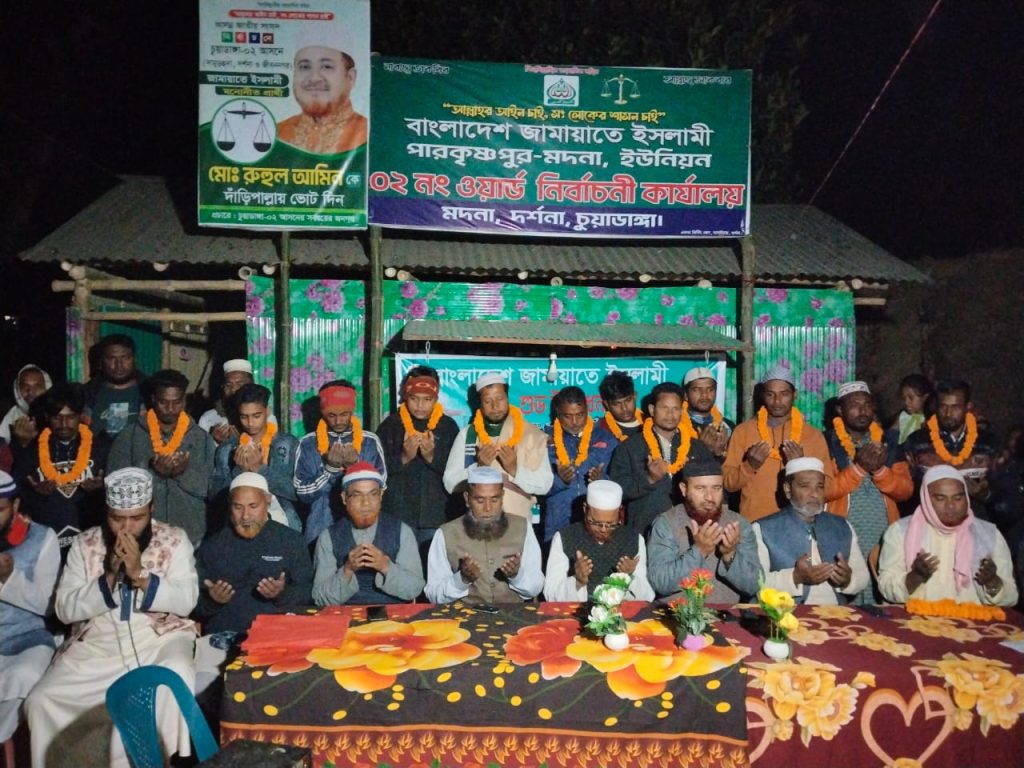 বাংলাদেশ জামায়াতে ইসলামী দর্শনা থানা শাখার ৫নং পারকৃষ্ণপুর-মদনা ইউনিয়ন এর ২নং ওয়ার্ড এর দলীয় কার্যালয়ের শুভ উদ্বোধন করা হয়েছে। শুক্রবার বাদ মাগরিব উদ্বোধনী অনুষ্ঠানে প্রধান অতিথি হিসাবে উপস্থিত ছিলেন- সাবেক দামুড়হুদা উপজেলা ভাইস চেয়ারম্যান ও জেলা জামায়াতের সহকারী সেক্রেটারী জননেতা আব্দুল কাদের, বিশেষ অতিথি হিসাবে উপস্থিত ছিলেন- জামায়াতের দর্শনা থানা শাখার আমীর মাওলানা রেজাউল করিম, বাংলাদেশ মাজলিসুল মুফাসসিরিন এর কেন্দ্রীয় সদস্য মাওলানা আবুজার গিফারী। অনুষ্ঠানের সভাপতিত্ব করেন পারকৃষ্ণপুর-মদনা ইউনিয়ন শাখার আমীর হাফেজ শহিদুল ইসলাম। অনুষ্ঠানে বিভিন্ন দলের প্রায় ২০ জন নেতাকর্মী বাংলাদেশ জামায়াতে ইসলামীতে যোগদান করেন।