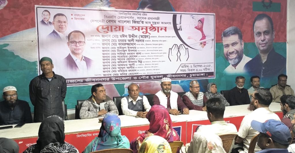 দোয়া মাহফিলে জীবননগর উপজেলা ও পৌর বিএনপির বিভিন্ন স্তরের নেতৃবৃন্দ উপস্থিত ছিলেন।