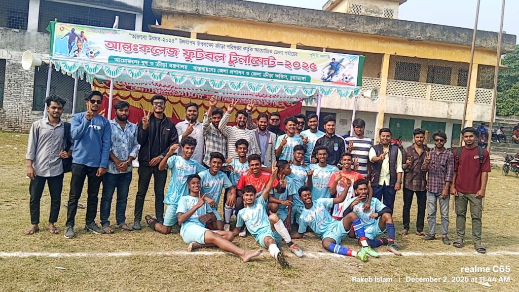 চুয়াডাঙ্গায় অনুষ্ঠিত অন্তঃকলেজ ফুটবল টুর্ণামেন্টে চুয়াডাঙ্গা সরকারি কলেজ, চুয়াডাঙ্গা পৌর ডিগ্রি কলেজ, মুন্সীগঞ্জ নিগার সিদ্দিক কলেজ ও বড় সলুয়া নিউ ডিগ্রি কলেজ সেমিফাইনালে উন্নীত হয়েছে। দিনব্যাপী চুয়াডাঙ্গা পুরাতন স্টেডিয়ামে অনুষ্ঠিত দিনের প্রথম খেলায় চুয়াডাঙ্গা সরকারি কলেজ ৩-০ গোলে তেতুল শেখ কলেজকে, মুন্সিগঞ্জ নিগার সিদ্দিক কলেজ ৩-০ গোলে হাটবোয়ালিয়া স্কুল এন্ড কলেজকে, বড় শলুয়া নিউ মডেল ডিগ্রী কলেজ ২-১ গোলে এমএস জোহা ডিগ্রী কলেজকে এবং চুয়াডাঙ্গা পৌর ডিগ্রী কলেজ ৬-০ গোলে চুয়াডাঙ্গা সরকারি ট্যেকনিক্যাল স্কুল এন্ড কলেজ কে পরাজিত করে সেমিফাইনালে উন্নীত হয়।