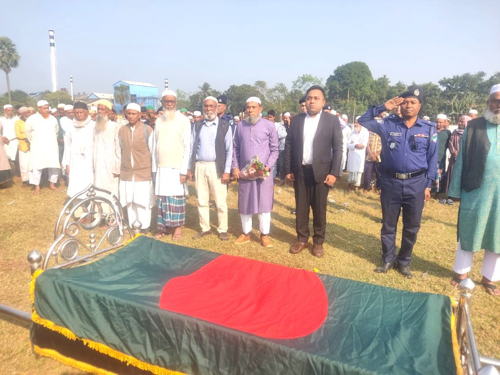 এ সময় উপজেলা সহকারী কমিশনার (ভূমি) ও এক্সিকিউটিভ ম্যাজিস্ট্রেট কে. এইচ. তাসফিকুর রহমানের উপস্থিতিতে একদল পুলিশ অফিসার ও ফোর্সের অংশগ্রহণে মরহুমকে রাষ্ট্রীয় সম্মাননা হিসেবে গার্ড অব অনার প্রদান করা হয়। এর আগে রাষ্ট্রের পক্ষ থেকে ও মুক্তিযোদ্ধা সংসদের পক্ষ থেকে ফুল দিয়ে মরহুমের প্রতি শেষ শ্রদ্ধা জানান দর্শন থানা মুক্তিযোদ্ধা কমান্ডার হাফিজুর আলম ও দর্শনা পৌর মুক্তিযোদ্ধা কমান্ডার ফজলুল হক। পরে জানাজা নামাজ শেষে তাকে দর্শনা আজমপুর কবরস্থানে দাফন করা হয়।