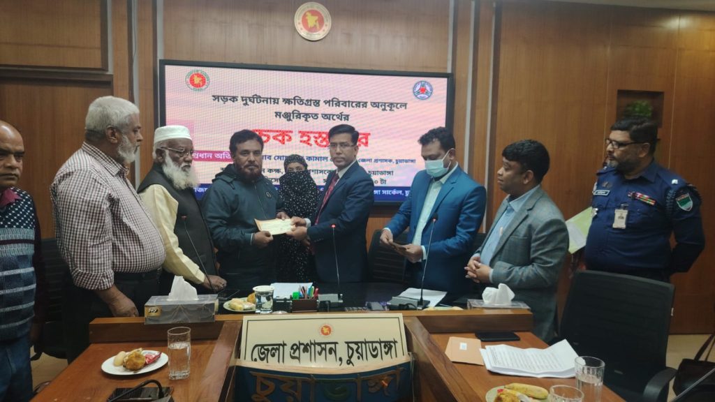 চুয়াডাঙ্গায় সড়ক দূর্ঘটনায় ক্ষতিগ্রস্থ ১৪টি পরিবাবরকে ৬৪ লক্ষ টাকার আর্থিক সহায়তা প্রদান