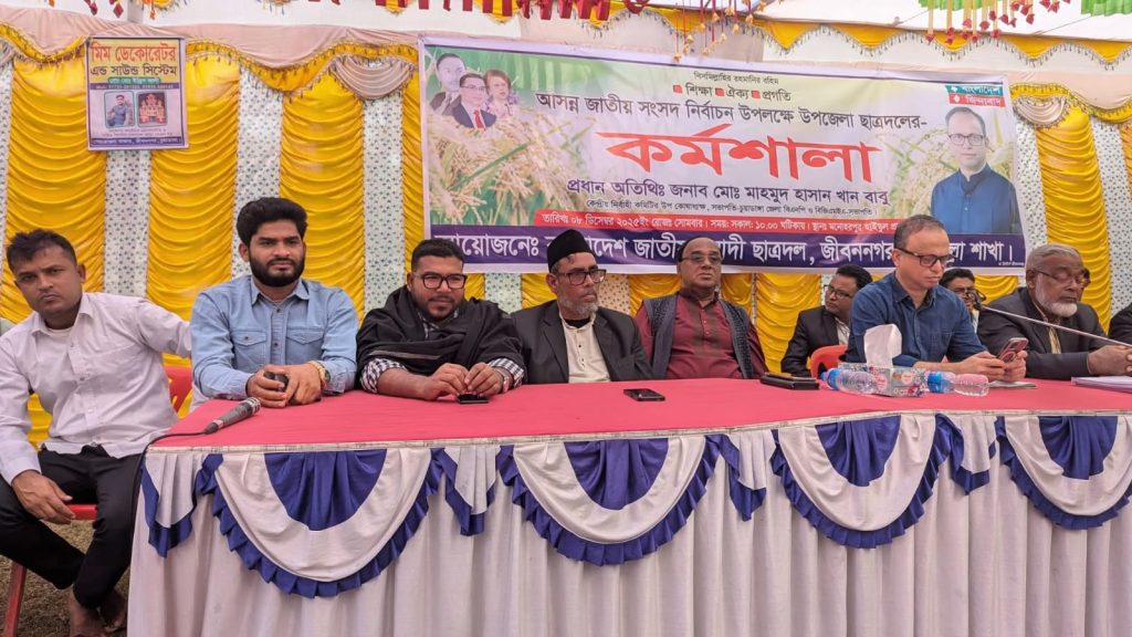 আসন্ন ত্রয়োদশ জাতীয় সংসদ নির্বাচন উপলক্ষে জীবননগরে যুবদল ও ছাত্রদলের কর্মশালা অনুষ্ঠিত হয়েছে। সোমবার বেলা ১১টা থেকে দুপুর ১২টা পর্যন্ত ছাত্রদলের কর্মশালা অনুষ্ঠিত হয়। পরে দুপুর সাড়ে ১২টার দিকে যুবদলের কর্মশালা শুরু হয়। এই কর্মশালা চলে বেলা দেড়টা পর্যন্ত। মনোহরপুর স্কুল মাঠে এই কর্মশালা অনুষ্ঠিত হয়। কর্মশালায় প্রধান অতিথি হিসেবে নির্বাচনী প্রশিক্ষণ দেন বিজিএমইএর সভাপতি, চুয়াডাঙ্গা জেলা বিএনপির সভাপতি ও চুয়াডাঙ্গা-২ আসনে বিএনপি মনোনীত প্রার্থী মাহমুদ হাসান খান বাবু। এসময় তিনি ছাত্রদল ও যুবদলের নেতা-কর্মীদের বিভিন্ন প্রশ্নের উত্তর দেন। তিনি বলেন, টিম অনুযায়ী কাজ করতে হবে। বিশৃঙ্খলা করা যাবে না। কোনো প্রশ্নের উত্তর না জানলে নিজের মতো করে উত্তর দেওয়া যাবে না।