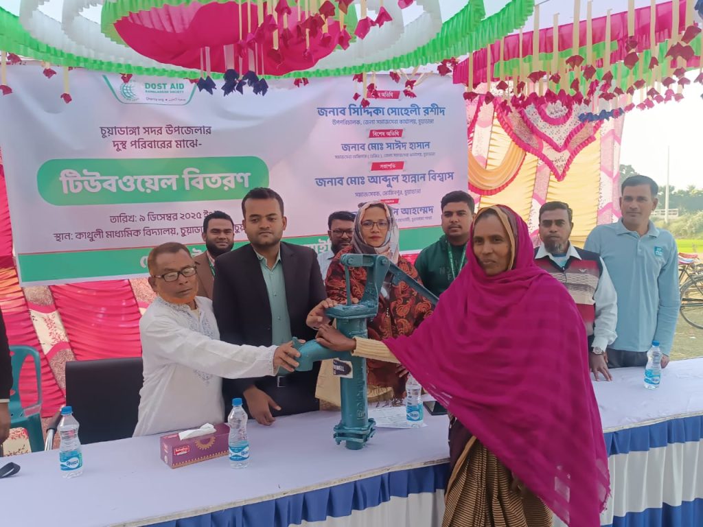 চুয়াডাঙ্গা সদর উপজেলায় সুবিধাবঞ্চিত ৩০টি পরিবারের মাঝে টিউবওয়েল বিতরণ করেছে দোস্ত এইড বাংলাদেশ সোসাইটি। মঙ্গলবার বিকেল ৩টায় মোমিনপুর ইউনিয়নের কাথুলী মাধ্যমিক বিদ্যালয় মাঠে এই টিউবওয়েলগুলো বিতরণ করা হয়।