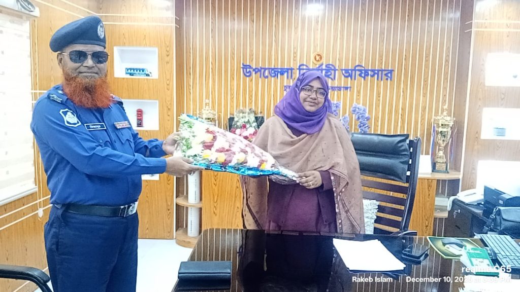 অফিসার্স ইনচার্জ নবাগত ইউএনও কে ফুল দিয়ে শুভেচ্ছা জানানোর পর, ইউএনও রিফাত আরার পক্ষ থেকেও অফিসার্স ইনচার্জকে ফুলেল শুভেচ্ছা দেওয়া হয়। ফুলেল শুভেচ্ছা বিনিময় শেষে আসন্ন জাতীয় সংসদ নির্বাচনকে সামনে রেখে ও ভোট কেন্দ্রের সার্বিক নিরাপত্তা বজায় রাখতে যা যা করা দরকার সে বিষয়ে সমন্বয়ের মাধ্যমে কাজ করার জন্য উভয় কর্মকর্তা প্রত্যয় ব্যক্ত করেন।