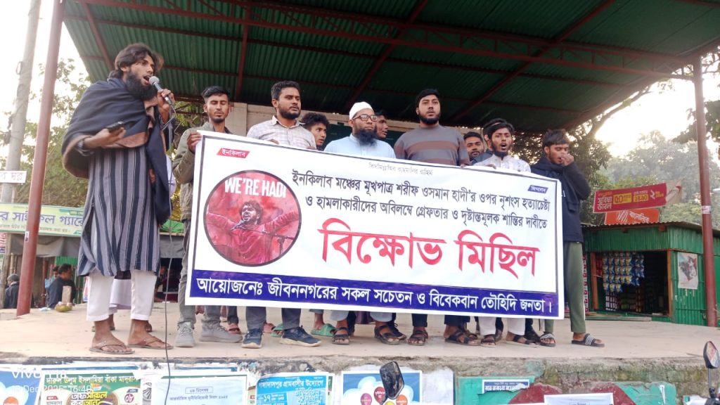 হাদির ওপর হামলার প্রতিবাদে জীবননগরে বিক্ষোভ সমাবেশ