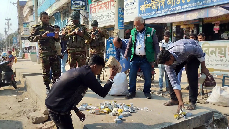 অভিযানে, অনুমোদনহীন ও মেয়াদ উত্তীর্ণ কমসেটিক্স বিক্রির দায়ে আকমল স্টোরের মালিক আসিফের কাছ থেকে ১ লাখ টাকা জরিমানা আদায় করা হয়। একই অভিযানে অস্বাস্থ্যকর পরিবেশে মিষ্টি তৈরীর দায়ের আমিন মিষ্টান্ন ভান্ডারের মালিক রাশেদুল ইসলামের কাছ থেকে ৫০ হাজার এবং মেয়াদ উত্তীর্ণ ওষুধ বিক্রির দায়ে এসএস ফার্মেসির মালিক মফিজুর রহমানের কাছ থেকে ২৫ হাজার টাকা জরিমানা আদায় করা হয়।