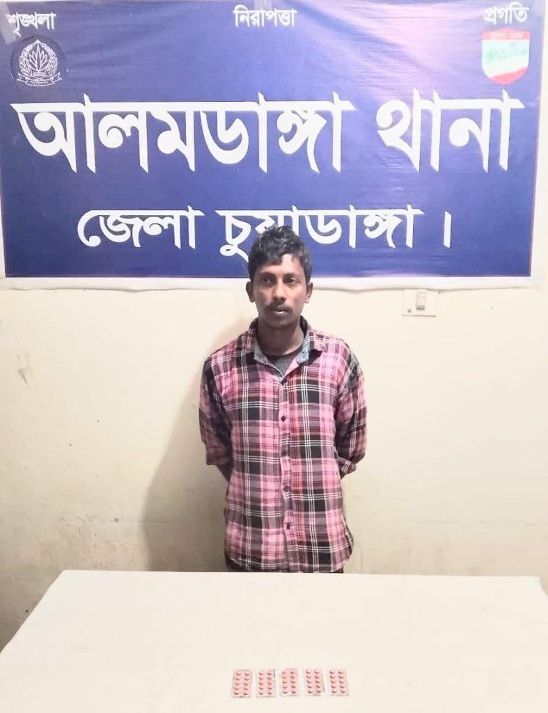 পুলিশ জানায়, আলমডাঙ্গার স্টেশনপাড়া এলাকায় মনোয়ার মেডিকেল সার্ভিসেসের সামনে পাকা রাস্তার ওপর থেকে সন্দেহভাজন এক যুবককে আটক করা হয়। পরে তার দেহ তল্লাশি করে তার কাছ থেকে ৫০ (পঞ্চাশ) পিস ট্যাপেন্টাডল ট্যাবলেটসহ তাকে গ্রেফতার করা হয়। গ্রেফতারকৃত যুবক হলেন, আলমডাঙ্গার গোবিন্দপুর (মাঠপাড়া) গ্রামের মহির উদ্দিনের ছেলে শাকিল হোসেন (২৫)।