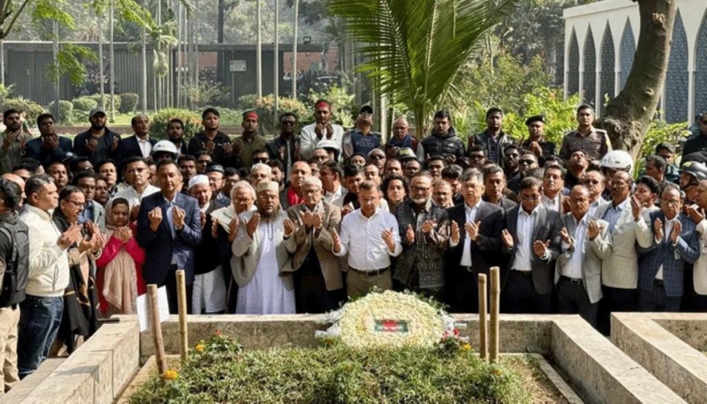 শহীদ ওসমান হাদির কবর জিয়ারত করলেন বিএনপির ভারপ্রাপ্ত চেয়ারম্যান তারেক রহমান। শনিবার (২৭ ডিসেম্বর) বেলা সাড়ে ১১টার দিকে তিনি কবর জিয়ারত করেন। একই জায়গার অবস্থিত জাতীয় কবি কাজী নজরুল ইসলামের করবও জিয়ারত করেন তিনি। এরপর মোনাজাতে অংশ নেন তারেক রহমানসহ বিএনপির সিনিয়র নেতারা।
