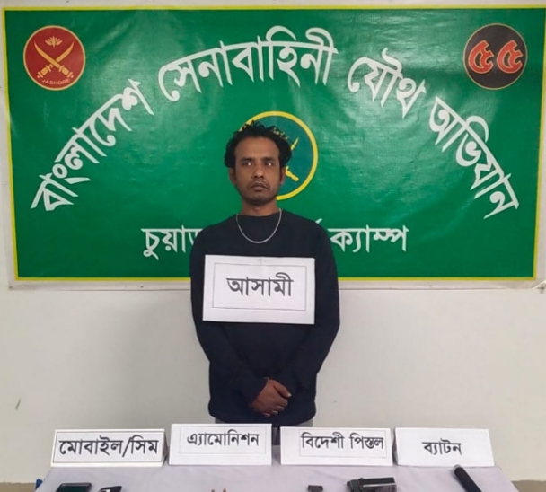 জীবননগরে যৌথবাহিনীর অভিযানে বিদেশি পিস্তলসহ যুবক গাজী জাহিদ আটক