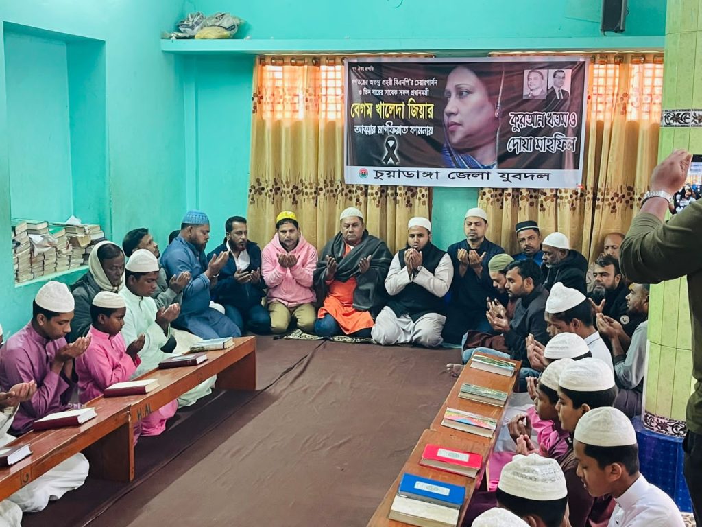 বিএনপির চেয়ারপার্সন খালেদা জিয়ার রুহের মাগফিরাত কামনায় যুবদলের উদ্যোগে কোরআন খতম ও দোয়া মাহফিল