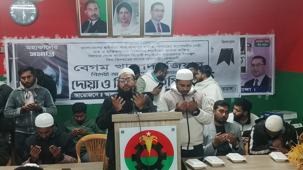 বাংলাদেশ জাতীয়তাবাদী দল (বিএনপি)-এর চেয়ারপারসন ও সাবেক তিন বারের প্রধানমন্ত্রী বেগম খালেদা জিয়ার রুহের মাগফেরাত কামনায় দোয়া ও মিলাদ মাহফিল অনুষ্ঠিত হয়েছে।