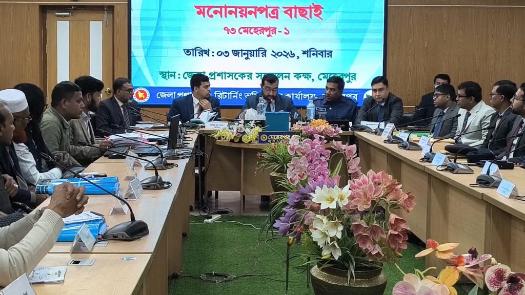 ত্রয়োদশ জাতীয় সংসদ নির্বাচন ২০২৬ উপলক্ষে মেহেরপুর-১ ও মেহেরপুর-২ সংসদীয় আসনের মনোনয়নপত্র যাচাই-বাছাই সম্পন্ন হয়েছে। গতকাল শনিবার সকাল সাড়ে ১০টায় জেলা প্রশাসক ও জেলা রিটার্নিং অফিসার ড. সৈয়দ এনামুল কবির-এর উপস্থিতিতে এ কার্যক্রম সম্পন্ন হয়। এ সময় জমাকৃত নথিতে ভুল থাকায় মেহেরপুর-১ আসনের পাঁচজন প্রার্থীকে বাতিল হিসাবে ঘোষণা করা হয়। অপরদিকে মেহেরপুর-১ আসনের চার প্রার্থী এবং মেহেরপুর-২ আসনের তিনজন প্রার্থীকে ভুল সংশোধনের সময় দেওয়া হয়। মনোনয়নপত্রের ত্রুটি সংশোধনের জন্য বিকেল চারটা পর্যন্ত সময় নির্ধারণ করা হয়।