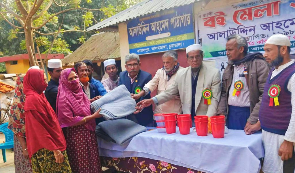 আলমডাঙ্গা আলাউদ্দিন আহমেদ পাঠাগারের শীতার্ত মানুষের মাঝে কম্বল বিতরন