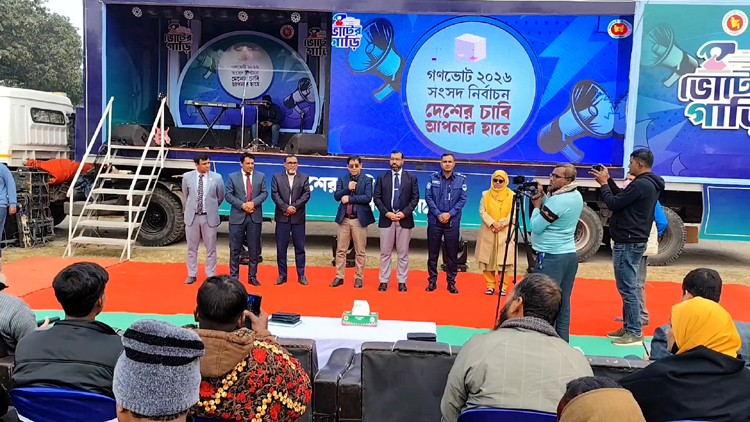 মেহেরপুরে নির্বাচনী সচেতনতায় ভোটের গাড়ি