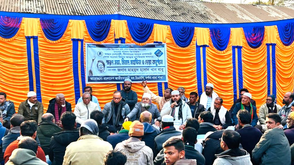 তিনবারের সাবেক প্রধানমন্ত্রী ও বিএনপি চেয়ারপার্সন মরহুম বেগম খালেদা জিয়ার রুহের মাগফিরাত কামনায় দর্শনায় শোকসভা, স্মরণসভা, মিলাদ মাহফিল ও দোয়া অনুষ্ঠান অনুষ্ঠিত হয়েছে। গতকাল বুধবার বিকেল ৩টায় দর্শনা আল-হেরা মাধ্যমিক বিদ্যালয় প্রাঙ্গণে আয়োজিত এ অনুষ্ঠানে প্রধান অতিথি হিসেবে বক্তব্য রাখেন চুয়াডাঙ্গা-২ আসনের বিএনপি মনোনীত সংসদ সদস্য পদপ্রার্থী ও চুয়াডাঙ্গা জেলা বিএনপির সভাপতি মাহমুদ হাসান খান বাবু।