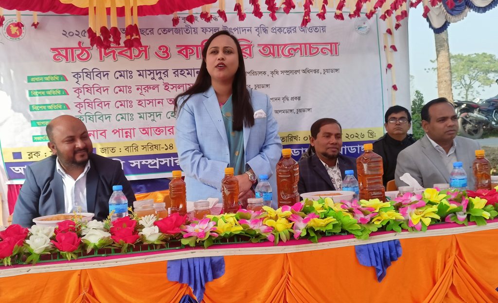 আলমডাঙ্গা উপজেলা কৃষি সম্প্রসারণ অফিসের উদ্যোগে তেল জাতীয় ফসলের উৎপাদন বৃদ্ধি প্রকল্পের আওতায় উপজেলার ডাউকি ইউনিয়নের মাজু ব্লকে মাধবপুর মাঠে এক মাঠ দিবস ও কারিগরী আলোচনা সভা অনুষ্ঠিত হয়েছে। গতকাল ১২টার অনুষ্ঠিত মাঠ দিবসের আলোচনা সভায় উপজেলা নির্বাহী অফিসার পান্না আক্তারের সভাপতিত্বে প্রধান অতিথি হিসেবে উপস্থিত ছিলেন, জেলা কৃষি সম্প্রসারণ অধিদপ্তরের জেলা বীজ প্রত্যয়ন অফিসার কৃষিবিদ নুরুল ইসলাম।