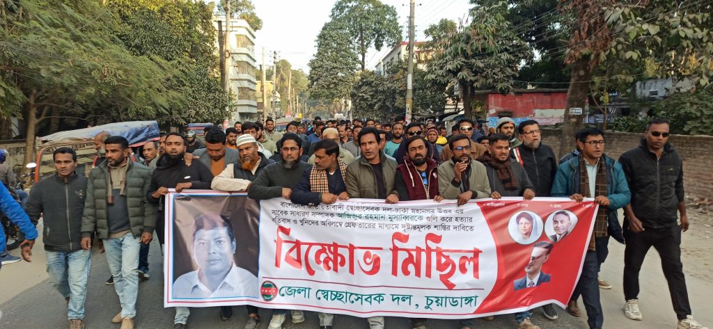মুসাব্বিরকে গুলি করে হত্যার প্রতিবাদে চুয়াডাঙ্গা জেলা স্বেচ্ছাসেবকদলের বিক্ষোভ মিছিল ও সমাবেশ