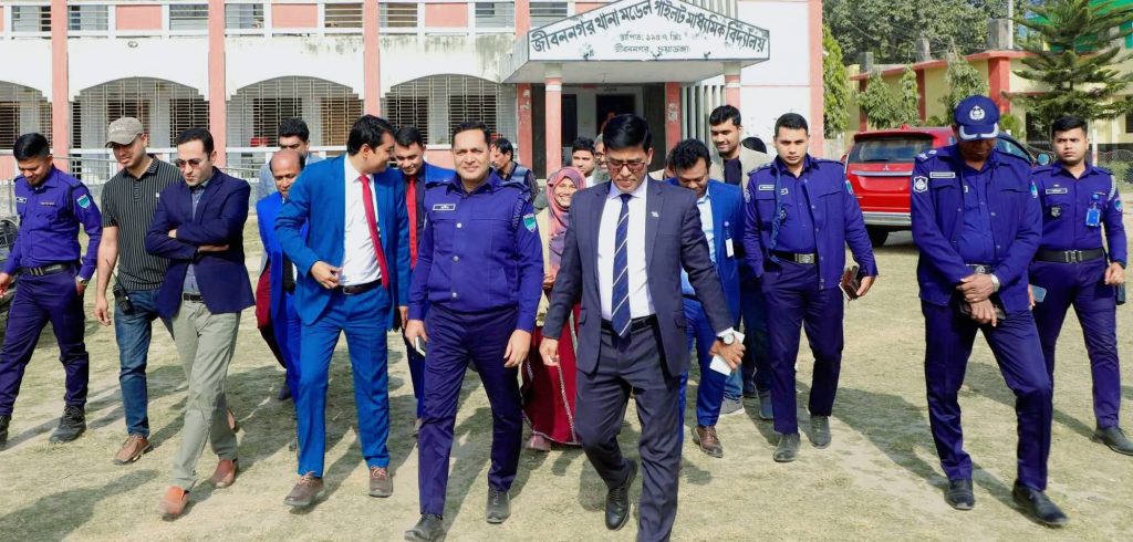 জীবননগর উপজেলার ঝুঁকিপূর্ণ বিভিন্ন ভোটকেন্দ্র পরিদর্শন করলেন ডিসি-এসপি