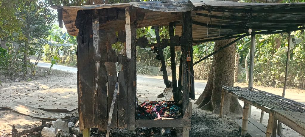 জীবননগর সেনেরহুদায় দুর্বৃত্তের আগুনে পিপাস হোসেনের মুদি দোকান পুড়ে ছাই