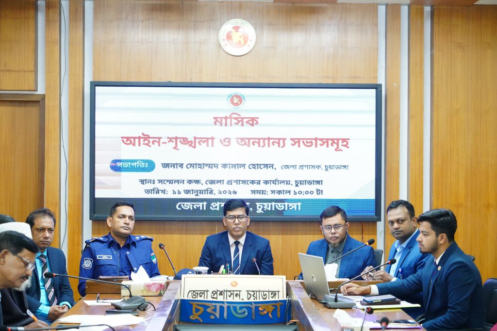 চুয়াডাঙ্গায় মাসিক আইন-শৃঙ্খলা কমিটির সভা অনুষ্ঠিত হয়েছে। রবিবার সকাল ১০টায় জেলা প্রশাসক কার্যালয়ের সম্মেলন কক্ষে এ সভা অনুষ্ঠিত হয়। সভায় সভাপতিত্ব করেন চুয়াডাঙ্গা জেলা প্রশাসক ও জেলা ম্যাজিস্ট্রেট মোহাম্মদ কামাল হোসেন।