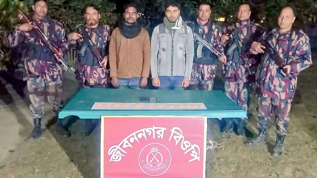আটক দুজন হলেন- জীবননগর উপজেলার খয়েরহুদা গ্রামের হালিমের ছেলে সাগর হোসেন এবং জীবননগর হাসপাতাল পাড়ার আজিজুল হকের ছেলে সুমন ইসলাম। গতকাল সোমবার সকালে মহেশপুর ব্যাটালিয়নের (৫৮ বিজিবি) সহকারী পরিচালক মুন্সী ইমদাদুর রহমান স্বাক্ষরিত এক সংবাদ বিজ্ঞপ্তিতে এ তথ্য জানানো হয়।