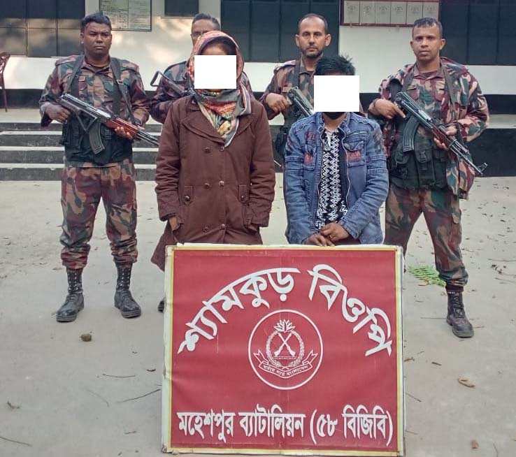 অপরদিকে সোমবার বিকাল সাড়ে ৩টার দিকে শ্যামকুর বিওপির সীমান্ত পিলার ৬০/১১১-আর-এর নিকট মাইলবাড়ীয়া চেকপোস্ট এলাকায় নিয়মিত টহলকালে হাবিলদার মো. রেজাউল করিমের নেতৃত্বে বিজিবির একটি টহল দল অবৈধভাবে বাংলাদেশ থেকে ভারতে যাওয়ার সময় দুইজন নারী বাংলাদেশি নাগরিককে আটক করে।