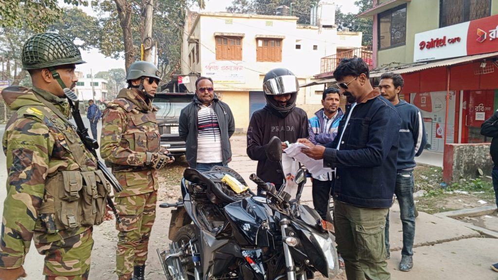 চুয়াডাঙ্গা সরকারি কলেজ রোডে লাইসেন্স ও হেলমেটবিহীন যানবাহনের বিরুদ্ধে যৌথভাবে চেকপোস্ট বসিয়ে অভিযান পরিচালনা করেছে পুলিশ ও সেনাবাহিনী। গতকাল শনিবার বিকাল সাড়ে ৪টা থেকে সোয়া ৫টা পর্যন্ত প্রায় এক ঘণ্টাব্যাপী এ অভিযান পরিচালিত হয়।