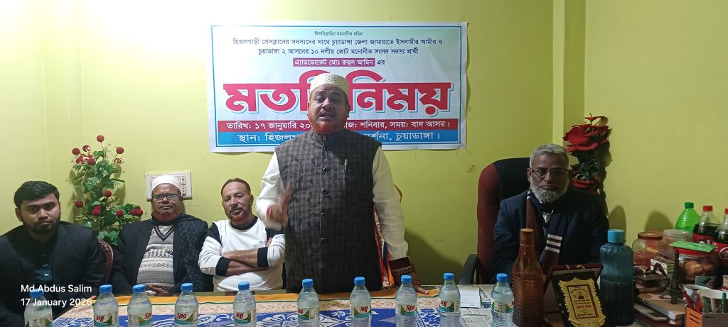 চুয়াডাঙ্গা সদরের হিজলগাড়ী প্রেসক্লাবে সাংবাদিকদের সঙ্গে মতবিনিময় করেছেন চুয়াডাঙ্গা জেলা জামায়াতে ইসলামীর আমীর ও চুয়াডাঙ্গা-২ আসনে সংসদ সদস্য প্রার্থী রুহুল আমিন। গত শনিবার বিকাল ৫টায় প্রেসক্লাবের হলরুমে আয়োজিত সভায় সাংবাদিকদের সঙ্গে সুশৃঙ্খল আলোচনায় অংশ নেন তিনি। সভার সভাপতিত্ব করেন প্রেসক্লাব সভাপতি আরিফ হাসান।