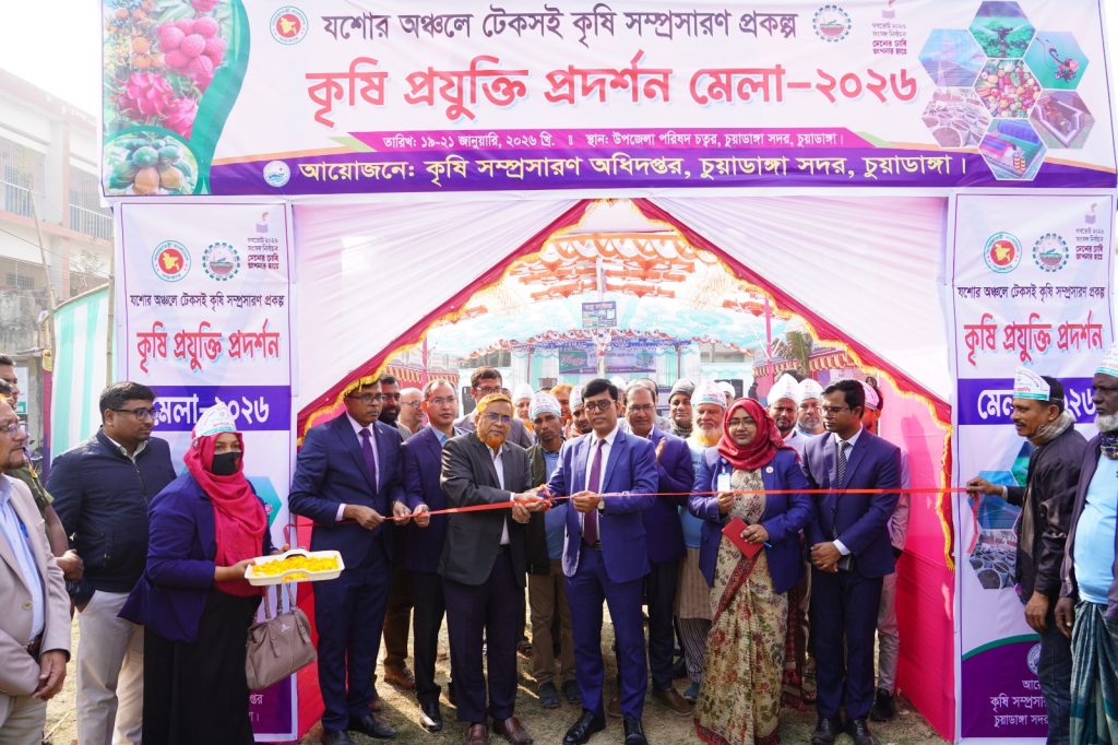 কৃষিতে আধুনিক প্রযুক্তির ব্যবহার বাড়াতে চুয়াডাঙ্গায় কৃষি প্রযুক্তি প্রদর্শন মেলা ২০২৬ এর উদ্বোধন করা হয়েছে। গতকাল সোমবার সকাল ১০ টায় সদর উপজেলা পরিষদ চত্বরে তিন দিনব্যাপি এ কৃষি প্রযুক্তি প্রদর্শন মেলার উদ্বোধন করা হয়। বেলুন উড়িয়ে ও ফিতা কেটে মেলার উদ্বোধন করেন জেলা প্রশাসক মোহাম্মদ কামাল হোসেন। পরে উপজেলা পরিষদ চত্বরে এক বর্ণাঢ্য র্যালি বের করা হয়। এ সময় মেলায় প্রদর্শনকৃত ১৪ টি স্টল পরিদর্শন করেন জেলা প্রশাসক মোহাম্মদ কামাল হোসেন। পরে মেলা চত্বরে এক আলোচনা সভা অনুষ্ঠিত হয়।