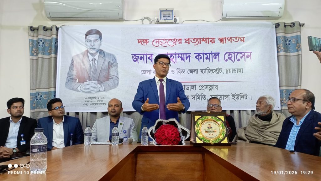 প্রেসক্লাব ও বাংলাদেশ সাংবাদিক সমিতি চুয়াডাঙ্গা ইউনিটের আমন্ত্রণে প্রথমবারের মতো প্রেসক্লাব পরিদর্শনে আসেন জেলা প্রশাসক। তিনি সাংবাদিক নেতৃবৃন্দের সাথে খোলামেলা আলোচনার পরিবেশ তৈরির জন্য ধন্যবাদ জানান। তিনি আরও বলেন, চুয়াডাঙ্গায় যোগদানের পর দুইটি বড় চ্যালেঞ্জ দেখেছেন মাথাভাঙ্গা নদীর অবৈধ দখল ও দুষণ এবং সীমান্তবর্তী হওয়ায় মাদকের প্রবেশ ও মাদকাসক্তি বৃদ্ধি। এছাড়া তিনি তামাক চাষকে মাদক ব্যবহারের প্রথম ধাপ হিসেবে উল্লেখ করেন এবং অভিভাবকদের প্রতি সন্ধ্যার পর সন্তানদের বাইরে না যাওয়ার অনুরোধ জানান।