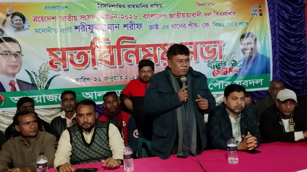 আগামী ১২ ফেব্রুয়ারি ত্রয়োদশ জাতীয় সংসদ নির্বাচন-২০২৬ উপলক্ষে বাংলাদেশ জাতীয়তাবাদী দল (বিএনপি)-এর মনোনীত প্রার্থী শরীফুজ্জামান শরীফের ধানের শীষ প্রতীককে বিজয়ী করার লক্ষ্যে আলমডাঙ্গায় যুবদলের উদ্যোগে মতবিনিময় সভা অনুষ্ঠিত হয়েছে। গতকাল বৃহস্পতিবার বিকেল ৪টায় আলমডাঙ্গা থানা পাড়া কমিউনিটি সেন্টারে এ সভা অনুষ্ঠিত হয়। আলমডাঙ্গা উপজেলা ও পৌর যুবদলের আয়োজনে অনুষ্ঠিত সভায় স্থানীয় নেতাকর্মী ও সমর্থকদের ব্যাপক উপস্থিতি লক্ষ্য করা যায়।