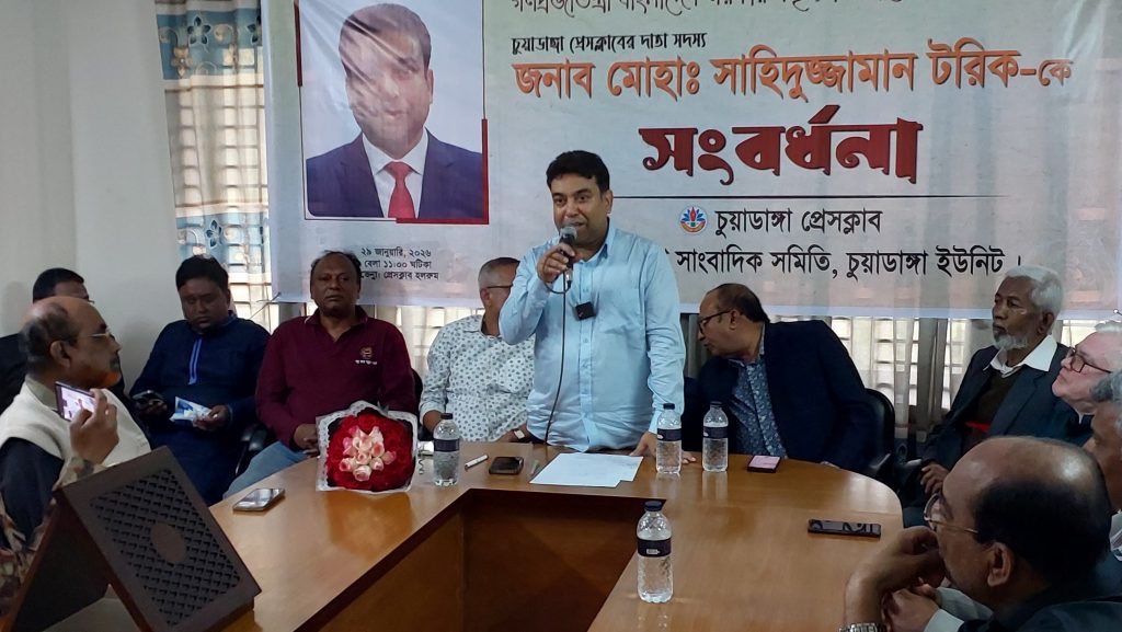 সিআইপি নির্বাচিত হওয়ায় সাহিদুজ্জামান টরিককে চুয়াডাঙ্গা প্রেসক্লাবের পক্ষ থেকে সংবর্ধনা প্রদান