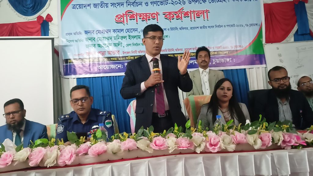 আসন্ন ত্রয়োদশ জাতীয় সংসদ নির্বাচন ও গণভোট-২০২৬ অবাধ, সুষ্ঠু, নিরপেক্ষ ও বিশ্বাসযোগ্যভাবে সম্পন্ন করার লক্ষ্যে ভোটগ্রহণকারী কর্মকর্তাদের জন্য একটি প্রশিক্ষণ কর্মশালা অনুষ্ঠিত হয়েছে। গতকাল শনিবার বেলা ১২টার দিকে আলমডাঙ্গা মাধ্যমিক বালিকা বিদ্যালয়ের মিলনায়তনে এ কর্মশালার আয়োজন করা হয়। এতে সভাপতিত্ব করেন উপজেলা নির্বাহী অফিসার পান্না আক্তার। প্রধান অতিথি হিসেবে উপস্থিত ছিলেন চুয়াডাঙ্গা জেলা প্রশাসক মো. কামাল হোসেন।