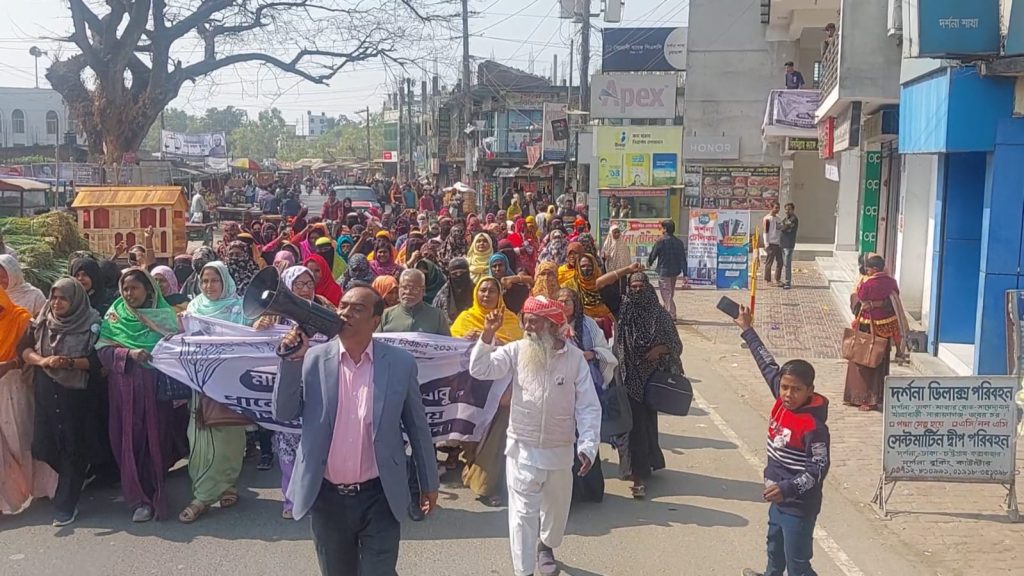 ধানের শীষের প্রার্থী মাহমুদ হাসান খান বাবুর পক্ষে দর্শনায় মহিলা দলের মিছিল