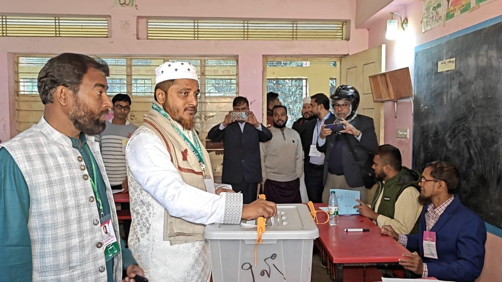 আলমডাঙ্গার ছত্রপাড়ায় ভোট দিলেন জামায়াত প্রার্থী মাসুদ পারভেজ রাসেল