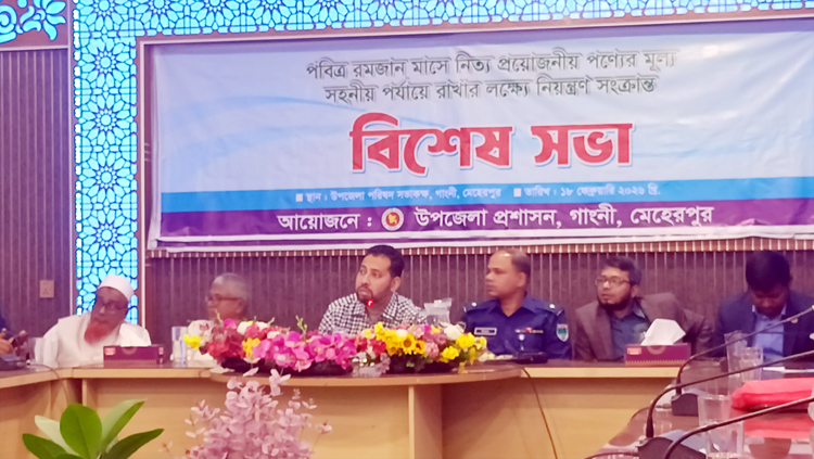 গাংনী উপজেলা আইন-শৃঙ্খলা কমিটি ও রমজানে নিত্য প্রয়োজনীয় দ্রব্যের মূল্য নিয়ন্ত্রণে রাখতে বিশেষ সভা অনুষ্ঠিত হয়েছে। মাহে রমজানে উপজেলার সার্বিক আইন-শৃঙ্খলা পরিস্থিতি নিয়ে সভায় বিস্তারিত আলোচনা করা হয়। গতকাল বুধবার সকালে উপজেলা পরিষদ সভা কক্ষে এ সভা অনুষ্ঠিত হয়। গাংনী উপজেলা প্রশাসনের আয়োজনে অনুষ্ঠিত সভায় সভাপতিত্ব করেন উপজেলা নির্বাহী অফিসার আনোয়ার হোসেন। তিনি বলেন, নির্বাচন পরবর্তী পরিস্থিতি ঘিরে যেকোনো ধরনের অপ্রীতিকর ঘটনা এড়াতে প্রশাসন সর্বোচ্চ সতর্ক অবস্থানে রয়েছে। আইন-শৃঙ্খলা রক্ষাকারী বাহিনীসহ সংশ্লিষ্ট সকল দপ্তর সমন্বিতভাবে কাজ করছে। সভায় উপস্থিত বক্তারা বর্তমান পরিস্থিতিতে সন্তোষ প্রকাশ করেন। এছাড়াও দ্রব্য মূল্য নিয়ন্ত্রণে রাখতে বাজার কমিটিসহ সংশ্লিষ্ট সকলের সহযোগীতা কামনা করেন উপস্থিত সকলেই।