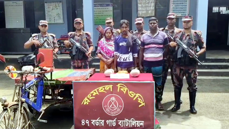 বিজিবি জানায়, ভোর সাড়ে ৪টার দিকে রংমহল বিওপি’র সীমান্ত পিলার ১৩৭/৬-এস এলাকা হতে প্রায় ২৫০ গজ ভিতরে খাসমহল নামক স্থানে হাবিলদার মোখলেছুর রহমানের নেতৃত্বে একটি দল বিশেষ অভিযান পরিচালনা করে। এসময় ব্যাটারি চালিত ভ্যানে ৩ কেজি গাঁজাসহ তাদের আটক করা হয়। জব্দকৃত গাঁজা ও ভ্যানের আনুমানিক সিজার মূল্য ৯০ হাজার ৫০০ টাকা। আটক আসামিদের পরবর্তী আইনানুগ ব্যবস্থা গ্রহণের জন্য গাংনী থানায় হস্তান্তর করা হয়েছে।