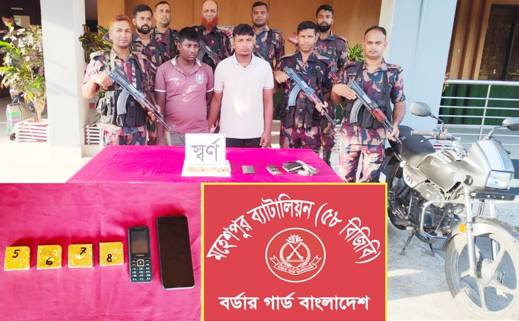 ৫৮-বিজিবি এক প্রেসবিজ্ঞপ্তিতে জানায়, কালিগঞ্জ থেকে জীবননগর গামী হাজী ডিলাক্স এক্সপ্রেস বাসে দুইজন ব্যক্তি স্বর্ণ বহন করছে এমন সংবাদের ভিত্তিতে অভিযান পরিচালনা করা হয়। গতকাল শনিবার বেলা ২টার দিকে সুবেদার মোঃ গোলাম মোস্তফার নেতৃত্বে টহল দলটি মহেশপুর থানাধীন কাকিলাদাড়ী বাজারে মোঃ তৌফিকুর রহমান মিঠুর ফলের আড়তের পাশে গোপনে অবস্থান নেয়। বেলা আড়াইটার দিকে হাজী ডিলাক্স এক্সপ্রেস বাসটি কালীগঞ্জ টু জীবননগর মহাসড়কের কাকিলাদাড়ী স্থানে পৌছুলে বিশেষ টহল দলটি বাসে অভিযান পরিচালনা করে। এসময় সৌরভ বিশ্বাসকে আটক করা হয়। তার কাছ থেকে উদ্ধার করা হয় ৪ পিস স্বর্ণের বার, যার ওজন ২ কেজি ৩৩১.৭৯ গ্রাম। অপরদিকে সৌরভ বিশ্বাসের সাথে থাকা অপর চোরাকারবারী শ্রী রণজিৎ বিশ্বাস আগেই কোটচাঁদপুর বাজারে নেমে গিয়েছিল। পরবর্তীতে কৌশলে রণজিৎকে ডেকে নিয়ে আসা হয়। এছাড়া অভিযানে ২ টি মোবাইল ফোন ও ১ টি মোটরসাইকেল জব্দ করা হয়। আসামীদেরকে মহেশপুর থানায় সোপর্দ করা হয়েছে। সোনারবার গুলো ঝিনাইদহ জেলা সরকারী কোষাগারে জমা করা হয়েছে।
