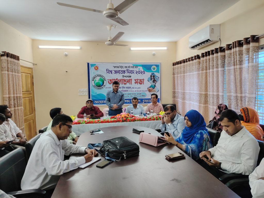 পরে জেলা প্রাণী সম্পদ দপ্তরের কনফারেন্স রুমে এক আলোচনা সভা অনুষ্ঠিত হয়। জেলা কৃত্রিম প্রজনন কেন্দ্রের উপ পরিচালক ডা. আ, হা, ম শামিমুজ্জামান অনুষ্ঠানে সভাপতিত্ব করেন। চুয়াডাঙ্গা ছাগল উন্নয়ন খামারের ব্যবস্থাপক সাদ্দাম হোসেন কি নোট উপস্থাপন করেন। তাতে বলা হয় জলাতঙ্ক হলো একটি মারাত্মক ও প্রাণঘাতী ভাইরাল রোগ। এটি স্নায়ুতন্ত্রের উপর প্রভাব ফেলে থাকে। আক্রান্ত প্রাণীর লালা এবং তরল পদার্থের মধ্যে থাকে। আক্রান্ত ব্যক্তিরা জল দেখে খুব ভয় পায়। আক্রান্ত স্থান ১০/১৫ মিনিট ধরে ভালো করে ধৌত করতে হবে এবং ক্ষার জাতীয় কোন জিনিস দিয়ে পরিস্কার করতে হবে। বেজি, কুকুর, বিড়াল, শিয়েল, বাদুড়ের মাধ্যমে জলাতঙ্ক রোগ ছড়ায়। বাংলাদেশে প্রতি বছর ৪/৫ লাখ মানুষ এসব প্রাণী দ্বারা আত্রান্ত হয়। সরকার ২০৩০ সালের মধ্যে দেশে জলাতঙ্ক নির্মূলের জন্য কাজ করে যাচ্ছে।