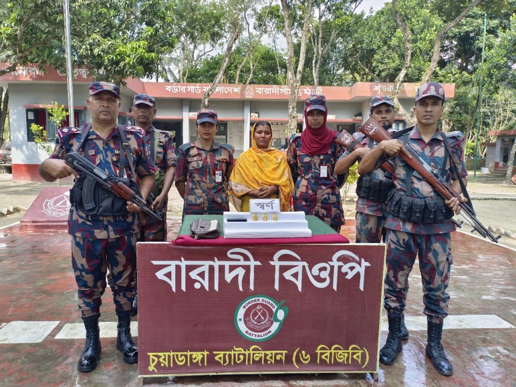 এ সংবাদের ভিত্তিতে বিজিবির চুয়াডাঙ্গা-৬ ব্যাটালিয়নের বারাদী বিওপির একটি বিশেষ টহল দল দুপুর ১২টার দিকে সীমান্ত পিলার ৮০/১০-আর হতে আনুমানিক ৮০০ গজ বাংলাদেশের অভ্যন্তরে কামারপাড়ায় অবস্থান নেয়। দুপুর সাড়ে ১২টার দিকে কামারপাড়া রাস্তা হতে মোছাঃ আসমা খাতুনকে তিন পিস স্বর্ণের বারসহ আটক করা হয়। স্বর্ণের বারগুলোর ওজন ৩৫৪ গ্রাম যার বাজার মূল্য ৫৮ লক্ষ ৫৮ হাজার ৭৫৬ টাকা।