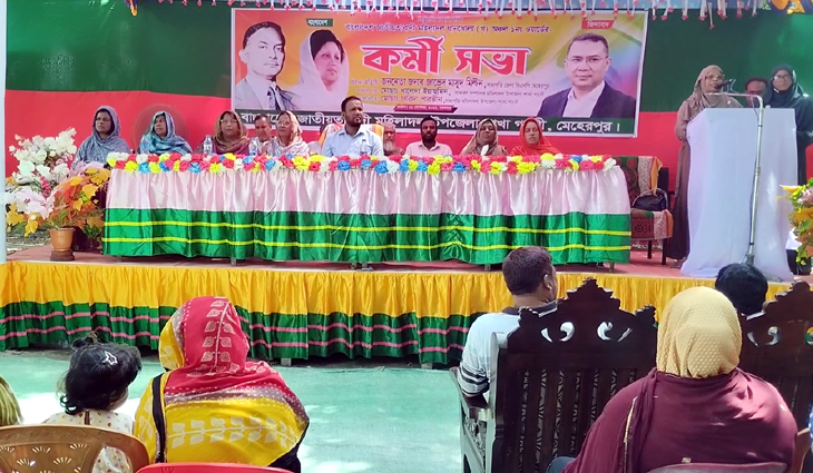 কর্মীসভায় সভাপতিত্ব করেন জাতীয়তাবাদী মহিলা দল গাংনী উপজেলা শাখার সভাপতি ফরিদা পারভীন। উপজেলা মহিলা দলের সাধারণ সম্পাদক খালেদা ইয়াসমিনের সঞ্চালনায় বক্তব্য রাখেন গাংনী উপজেলা বিএনপি’র সভাপতি আলফাজ উদ্দিন কালু, মেহেরপুর জেলা বিএনপির সাংগঠনিক সম্পাদক আখেরুজ্জামান, গাংনী উপজেলা বিএনপির সাংগঠনিক সম্পাদক আব্দাল হক, মেহেরপুর জেলা যুবদলের সাধারণ সম্পাদক কাউসার আলী, ধানখোলা ইউনিয়ন বিএনপির সাবেক সভাপতি মোস্তাক আহমেদ। এসময় যুবদল নেতা মুনসাদ আলীসহ বিএনপি ও অঙ্গ সহযোগী সংগঠনের নেতাকর্মীরা উপস্থিত ছিলেন।