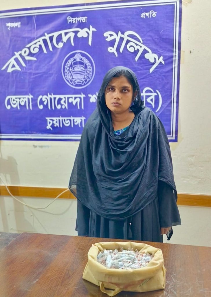 চুয়াডাঙ্গা জেলা পুলিশ গণমাধ্যমে পাঠানো এক প্রেসবিজ্ঞপ্তিতে জানান, চুয়াডাঙ্গা গোয়েন্দা পুলিশের এস আই তোরগুল হাসান সোহাগ, এএসআই(নিঃ) আরিফুল ইসলাম, এএসআই(নিঃ) মোত্তালেব হোসেনের নেতৃত্বে গতকাল সন্ধ্যার দিকে মাদকবিরোধী অভিযান পরিচালনা করা হয়। এ সময় দামুড়হুদার লোকনাথপুর পূর্বপাড়ার শাকিল মিয়ার বাড়ির সামনে থেকে লাবলু মিয়ার মেয়ে লাবনী খাতুনকে আটক করা হয়। পরে তার কাছ থেকে উদ্ধার করা হয় ২৬০পিস প্যাথেড্রিন ইনজেকশন। গ্রেফতারকৃত আসামীর বিরুদ্ধে দামুড়হুদা মডেল মামলা দায়ের করা হয়েছে।